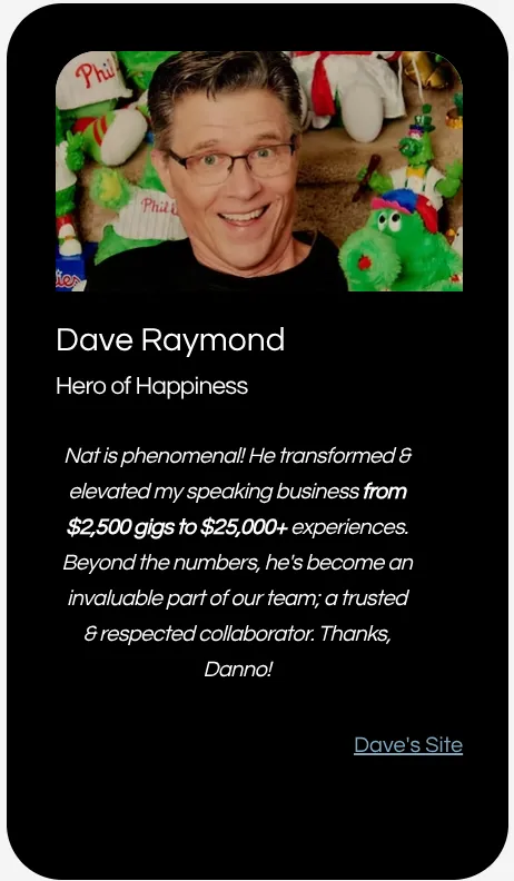 Having personally experienced the frustration of underpricing, gig dependency, and the "exposure for experience" trap that keeps most speakers broke, Nat became keenly aware of the systemic issues keeping talented experts from building real wealth through their speaking careers. He realized that speakers don't fail because they lack talent — they fail because they lack scalable business systems.